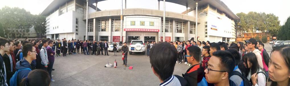 室内安全教育结束后,地学院还请保卫处消防科为师生在西区体育馆门进行了一场消防演练。大家聚精会神地学习各种灭火器的使用方法和注意事项,在随后的实战演练中,同学们积极踊跃报名参加了水带式灭火器和干粉灭火器使用练习。同学们兴致勃勃,老师们也在旁边耐心指导。