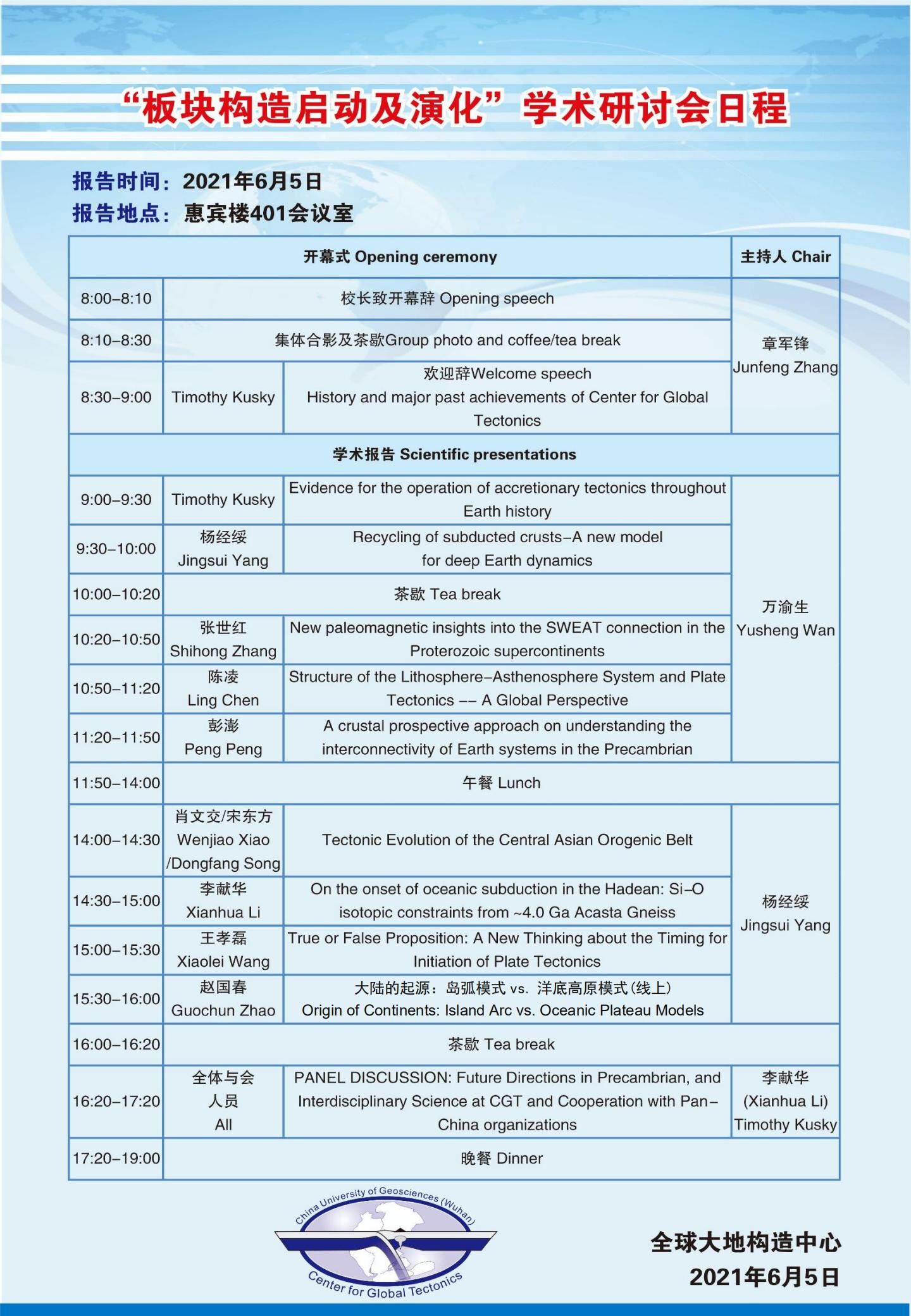 【6月5日】“板块构造启动及演化”学术研讨会日程